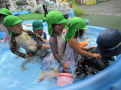 今日は日差しも少し和らいでいました。元気にプールで遊びました。