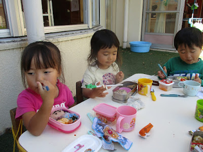 すみれ組さんに手をつないでもらってお日限さんまで行ってきました。お弁当もおいしかったね!